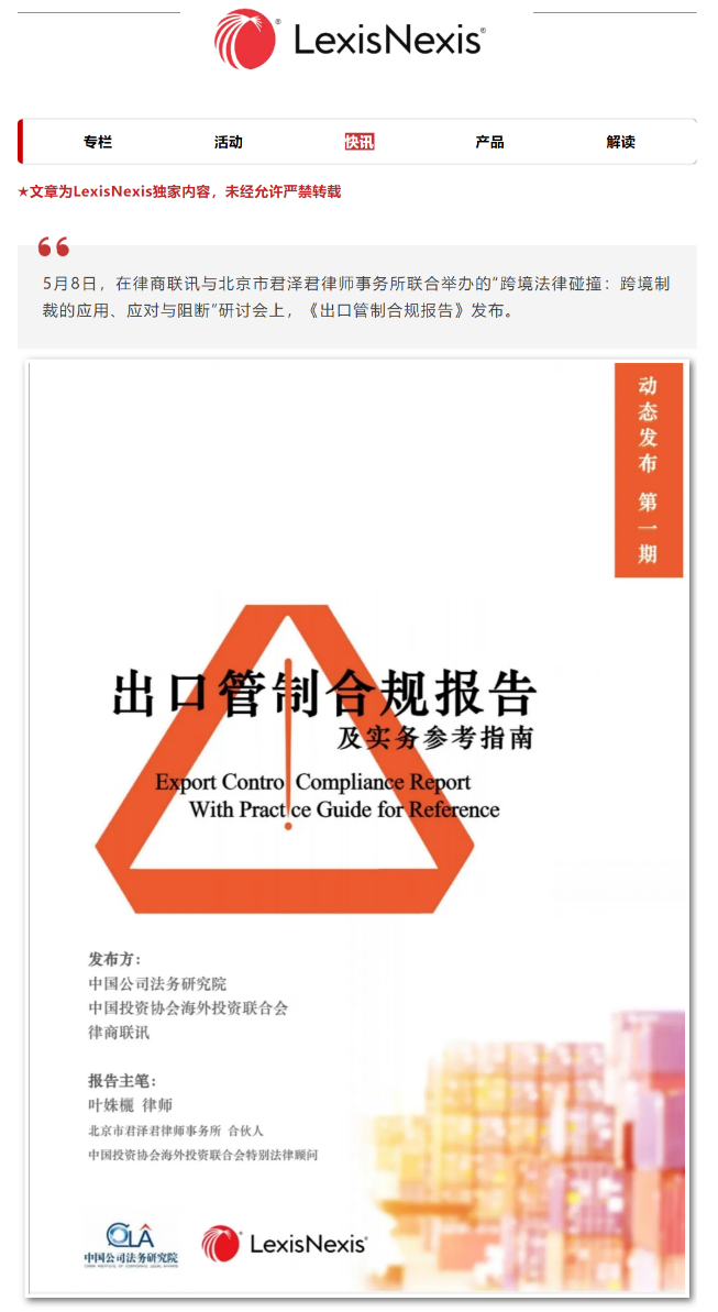 《出口管制合规报告及实务参考指南》——君泽君与律商联讯联合发布!