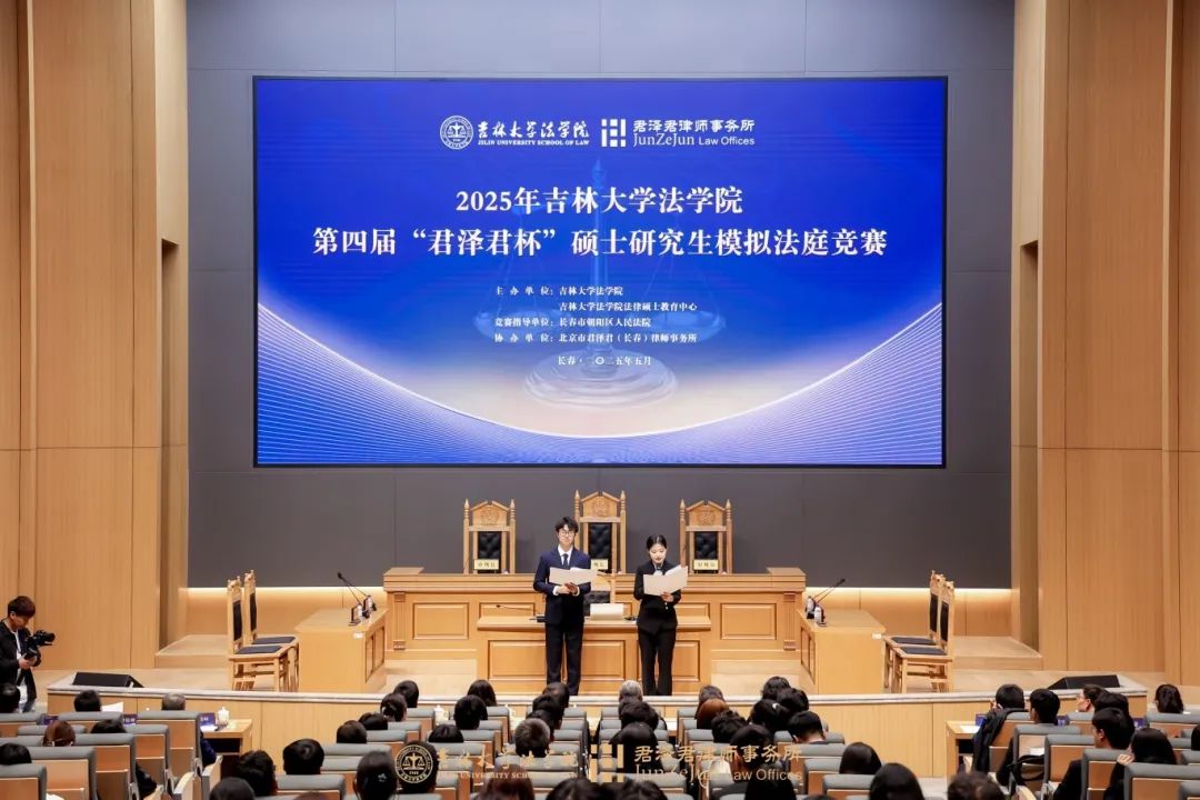 2025年5月14日,由吉林大学法学院与北京市君泽君(长春)律师事务所联合举办的吉林大学法学院第四届"君泽君杯"硕士研究生模拟法庭竞赛决赛在吉大中心校区法学楼B101教室圆满落下帷幕。作为"君泽律星"校园法律公益项目的标志性成果,本届赛事延续了往届"以赛促学、以赛育人"的优良传统,通过为期一月的激烈角逐,A3(尊法学法守法用法队)与C2(有理说得清队)两支队伍凭借扎实的专业功底和出色的庭辩表现成功会师决赛,为现场观众呈现了一场兼具专业深度与思辨智慧的法律实务盛宴,充分展现了吉大法科学子的卓越风采。