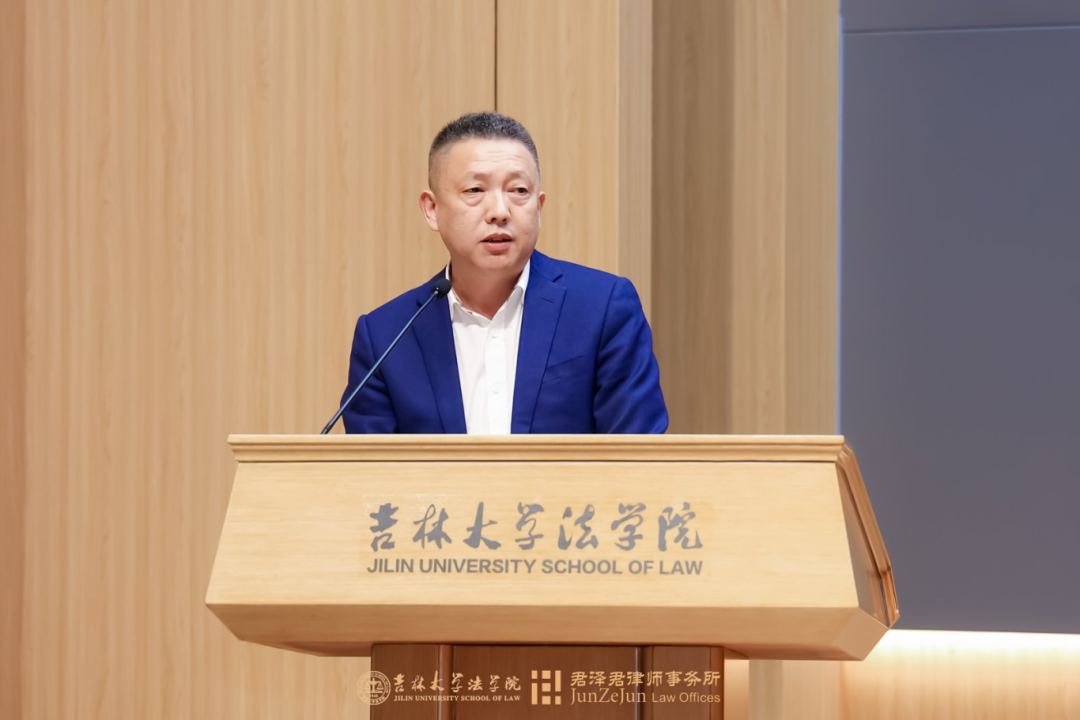 吉林大学法学院党委副书记张俊峰张俊峰副书记在总结发言中回顾了本届模拟法庭竞赛的整体情况,并代表学院向评审专家、合作单位及全体参与者致以诚挚谢意。他指出,模拟法庭竞赛作为重要的实践教学平台,不仅培养了学生的专业能力和思辨精神,更践行了"以赛促学"的教育理念。
