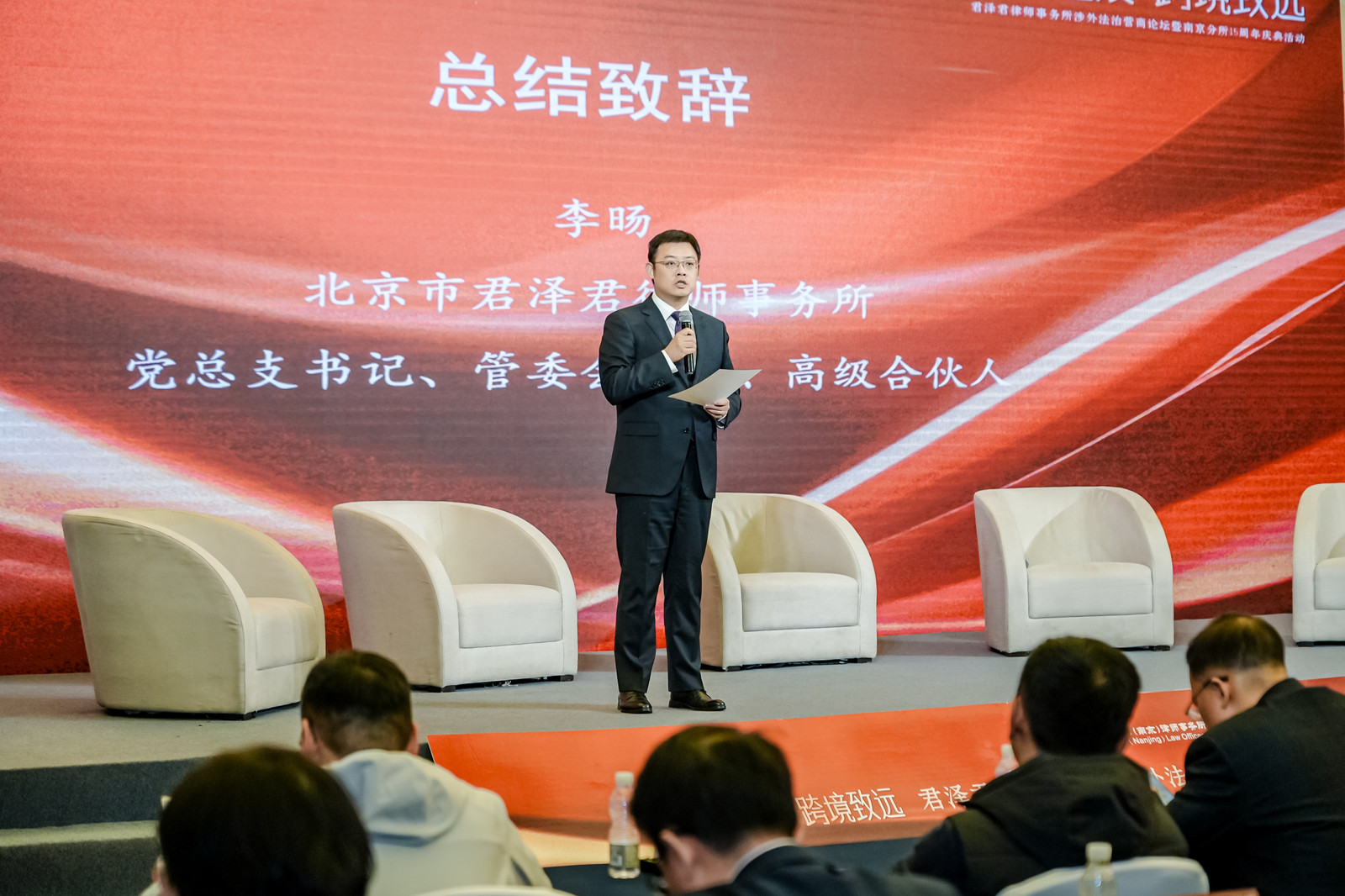最后,君泽君律师事务所党总支书记、管委会委员李旸律师为论坛作总结致辞,为下午的专业议程画上圆满句号。