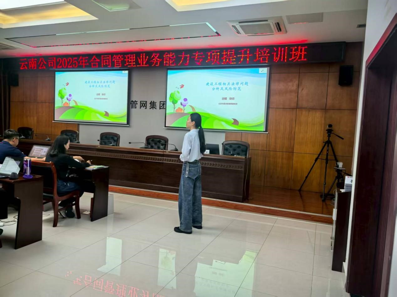 为进一步贯彻落实党的二十大精神,深化法治企业建设,提升企业合规管理与风险防控能力,近日,北京市君泽君(昆明)律师事务所负责人、合伙人普红梅,律师胡蝶受邀为国家石油天然气管网集团有限公司云南分公司开展专项法律培训。本次培训聚焦合同总论与建设工程合同实务,紧密结合企业运营实际,助力企业依法经营、规范管理。国家石油天然气管网集团有限公司云南分公司综合监督部门工作人员、各作业区具体业务人员等参加了本次培训。
