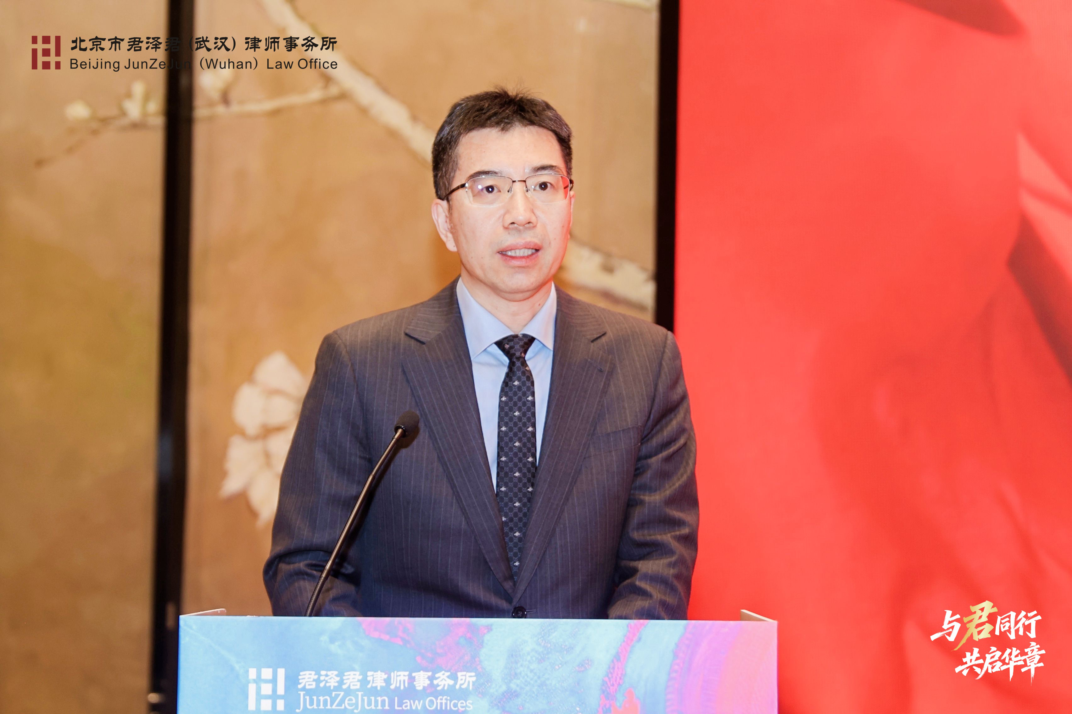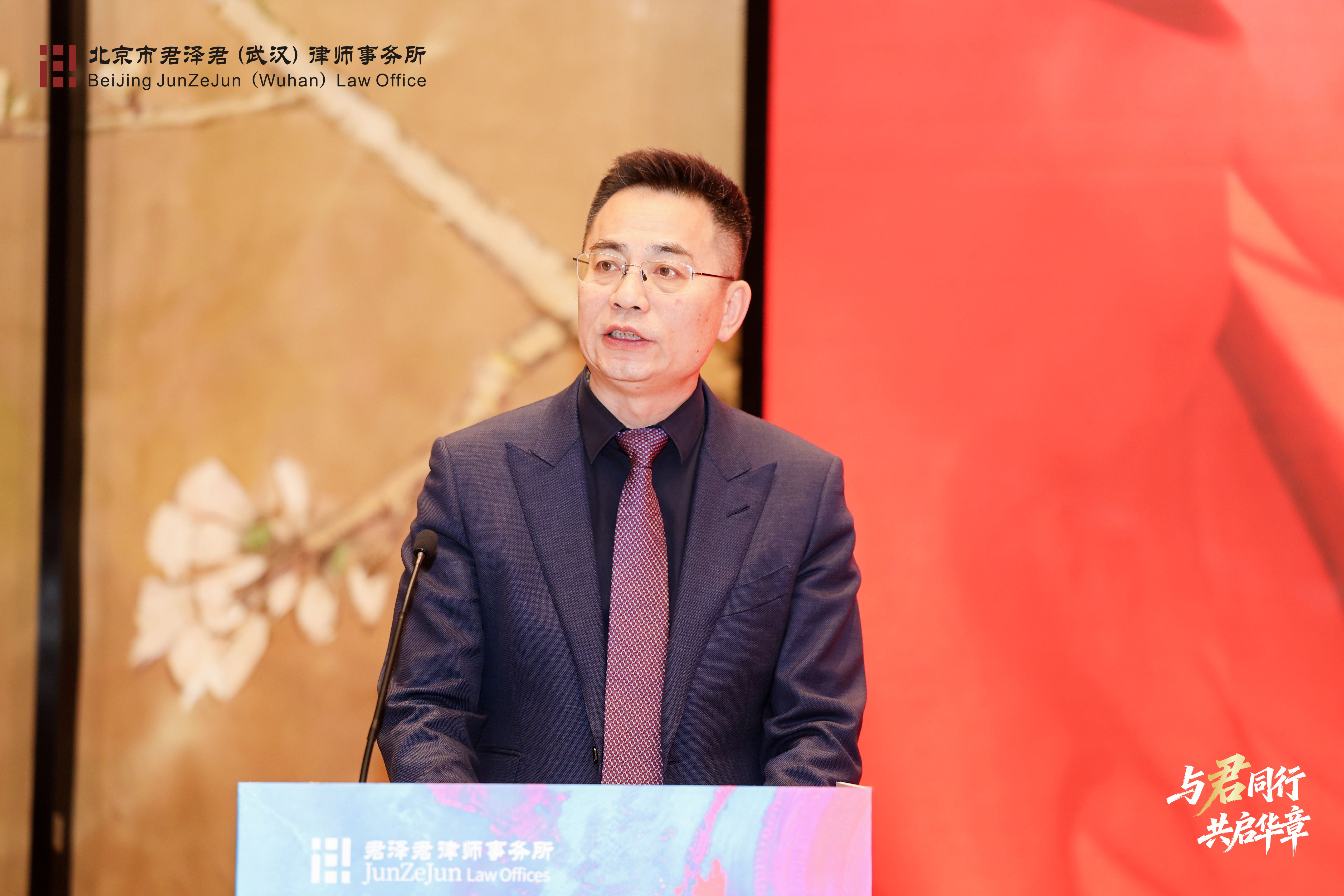 庆典活动在庄重而热烈的氛围中拉开序幕。君泽君律师事务所主任李云波首先致辞,深入阐释 “君子之道,互泽共赢” 的文化内核与君泽君三十年发展的深厚积淀。作为拥有26家分所、1400余名专业人才的行业领军者,君泽君布局武汉正是深耕华中市场的战略抉择。