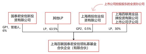 为响应上海市建设具有全球影响力和吸引力的国际消费中心城市,上海商投创业投资有限公司、国泰君安创新投资有限公司作为GP,与百联股份控股子公司上海百联商业品牌投资有限公司、上海黄浦投资控股(集团)有限公司(代表黄浦区产业升级基金)、北京国际信托有限公司等LP,共同出资设立上海百联国泰君安创领私募基金合伙企业(有限合伙)。