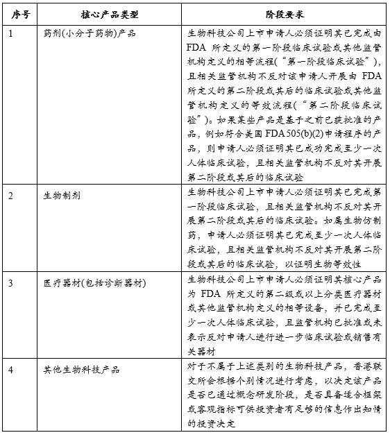 1. 生物科技公司上市申请人至少有一只核心产品已经通过概念阶段